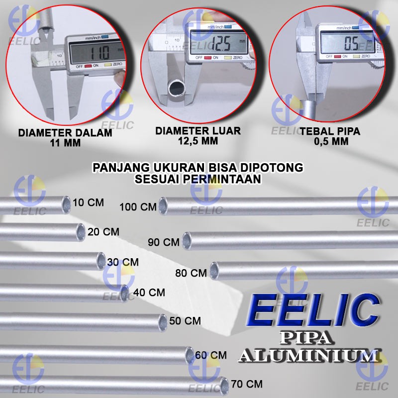 Eelic Pia Alm0 5ix0 5mm Pipa Aluminium Berkualitas Pipa Bulat Ukuran 1 2 Inch X 0 5 Mm Panjang 80cm