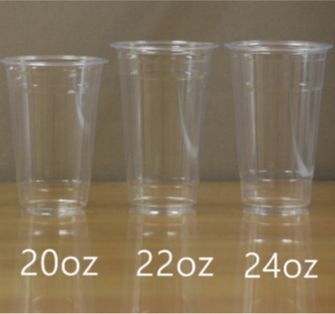 Mulai dari 12 oz 14 oz 16 oz 18 oz hingga 22 oz dengan ketebalan mulai dari 5 gram hingga 10 gram tergantung permintaan klien. Pet titik lebur rendah tidak bisa untuk minuman panas terkena sedikit panas dapat melebur kecuali hangat tingkat transparansi bening glossy dengan ketebalan tinggibiasa dipakai oleh dunkin donut jco starbucks dsb.