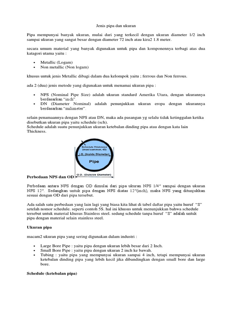 Tabel Nominal Pipe Size Dan Pipe Schedule Indonesian