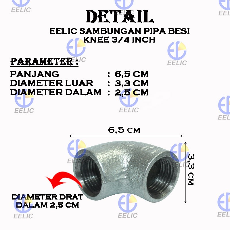 Eelic Kne 3 4i Sambungan Pipa Knee Gip 3 4 Inch Bahan Besi Galvanis